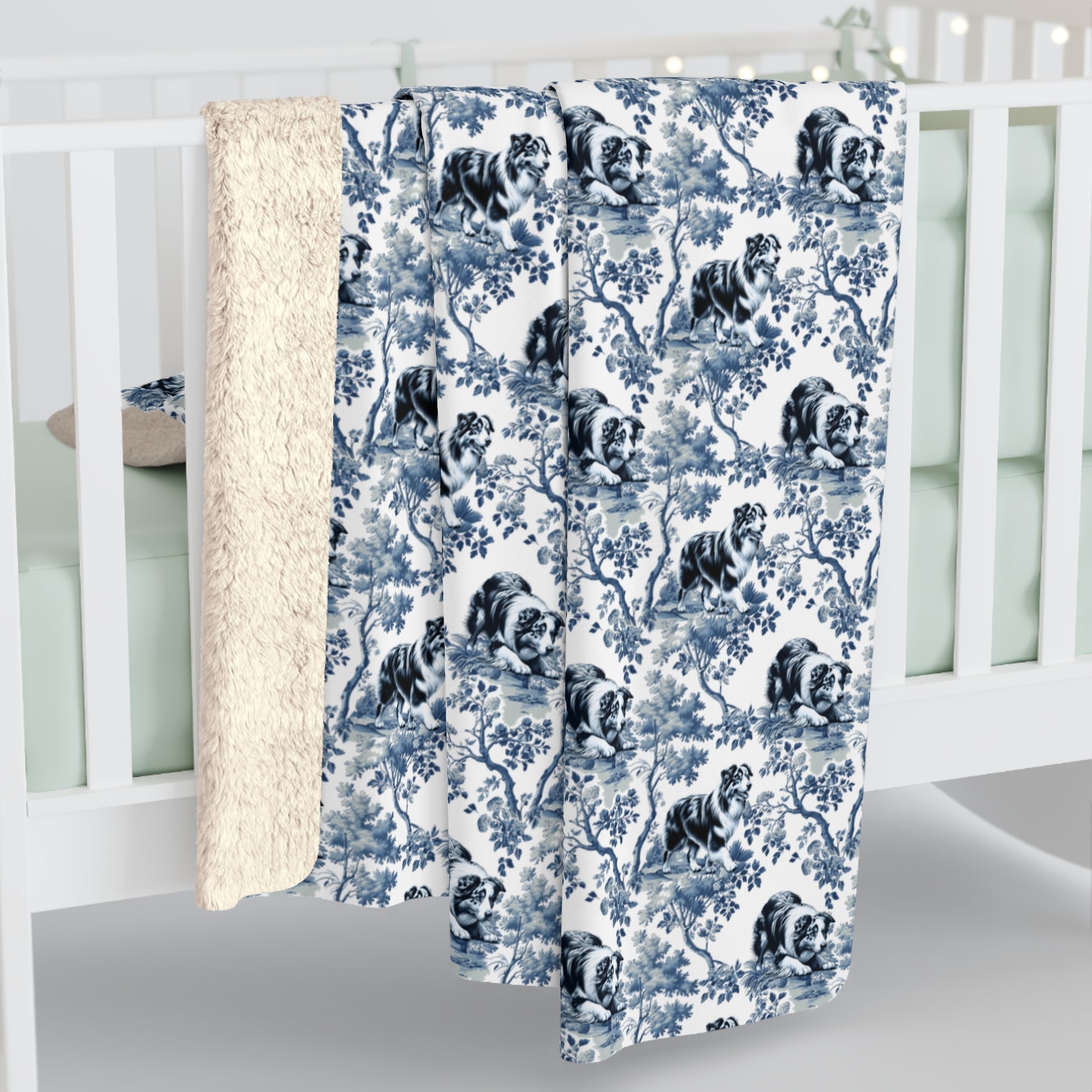 With a smooth printed Australian Shepherd toile pattern front and plush sherpa backing, this blanket delivers wrap-around coziness. The sherpa fleece adds warmth without bulk — perfect for sofas, beds, or anywhere you want to get cozy. Printed and shipped in the USA.