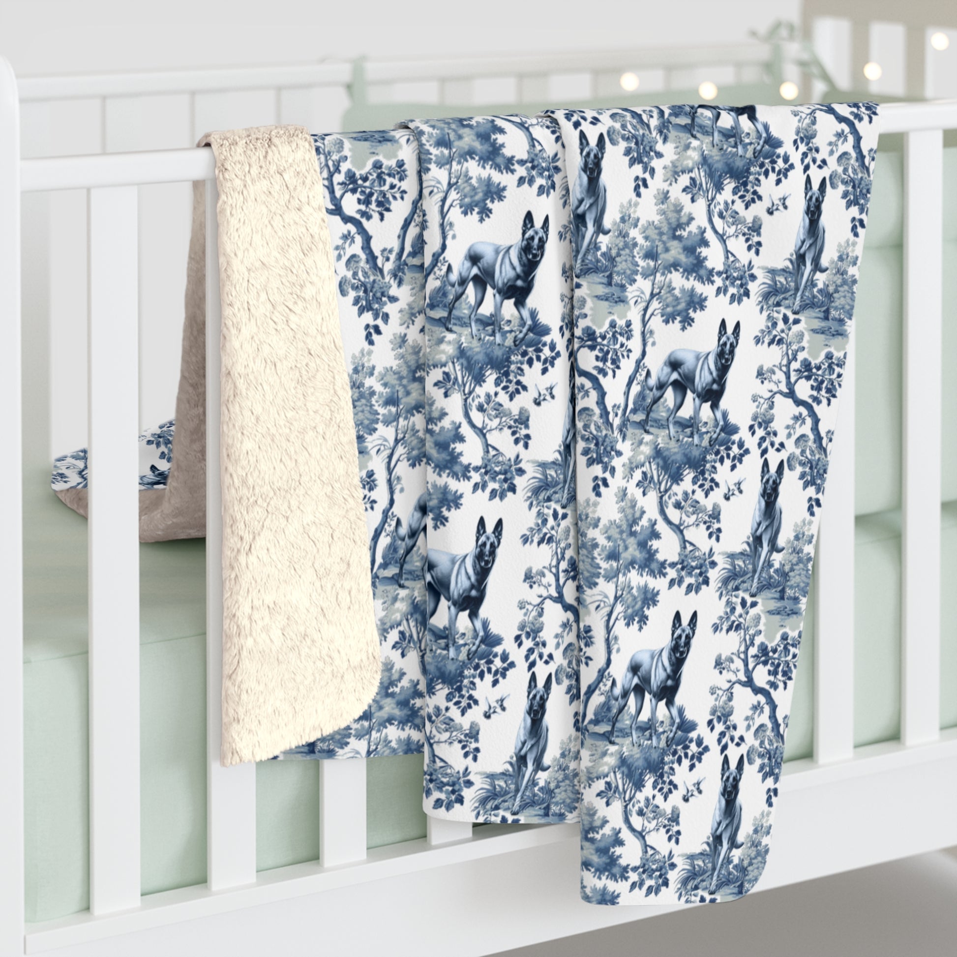 With a smooth printed Belgian Malinois toile pattern front and plush sherpa backing, this blanket delivers wrap-around coziness. The sherpa fleece adds warmth without bulk — perfect for sofas, beds, or anywhere you want to get cozy. Printed and shipped in the USA.