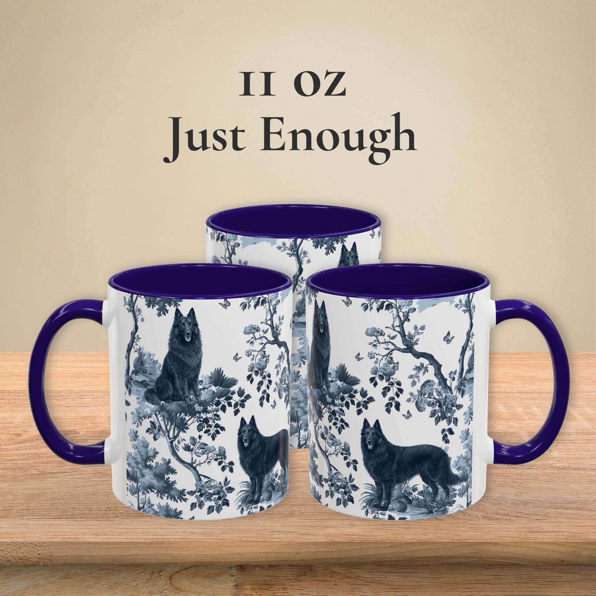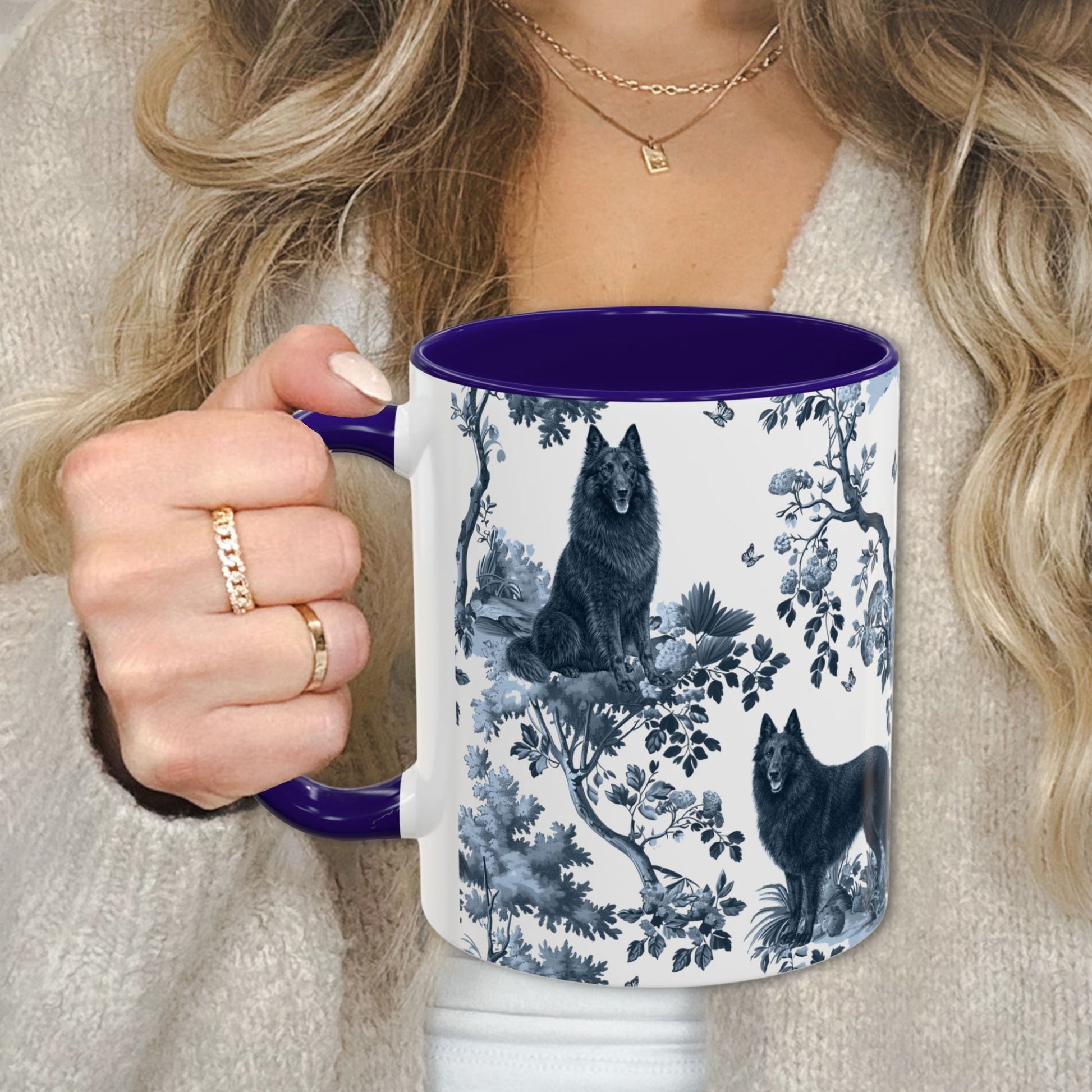 The love is real. The Belgian Sheepdog (Groenendael) obsession is real. And this mug? Just as real as both. Our exclusive Belgian Sheepdog (Groenendael) toile pattern brings elegant French design to your favorite obsession - printed in crisp, vibrant detail on glossy white ceramic with a striking deep blue interior and handle. It's the kind of mug that makes people ask "where did you get that?" They're your world. This is your mug. Simple as that.