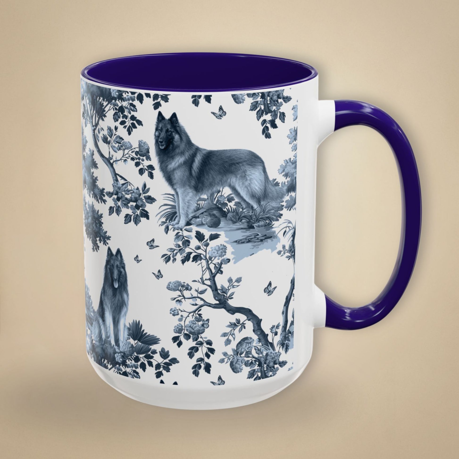 The love is real. The Belgian Tervuren obsession is real. And this mug? Just as real as both. Our exclusive Belgian Tervuren toile pattern brings elegant French design to your favorite obsession - printed in crisp, vibrant detail on glossy white ceramic with a striking deep blue interior and handle. It's the kind of mug that makes people ask "where did you get that?" They're your world. This is your mug. Simple as that.