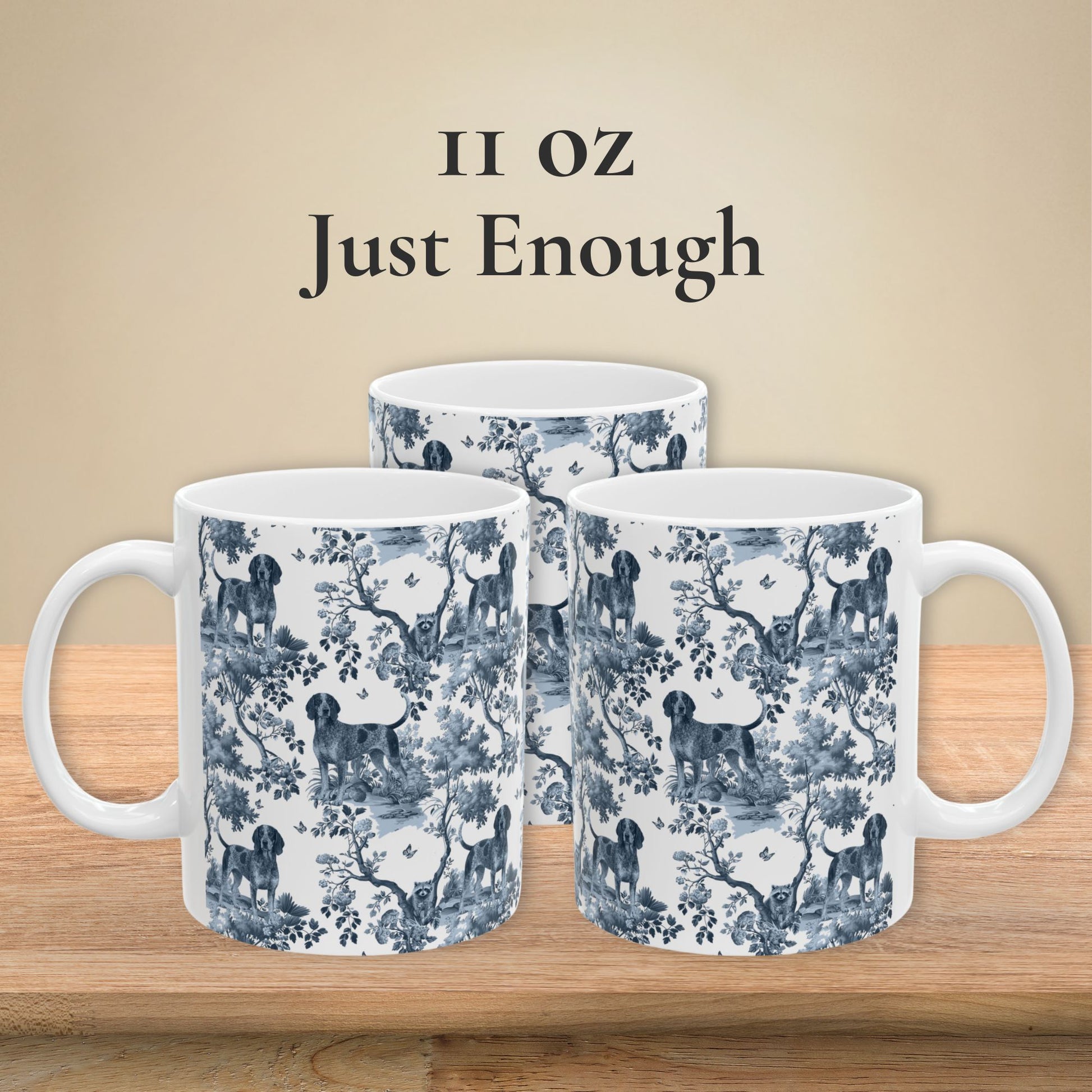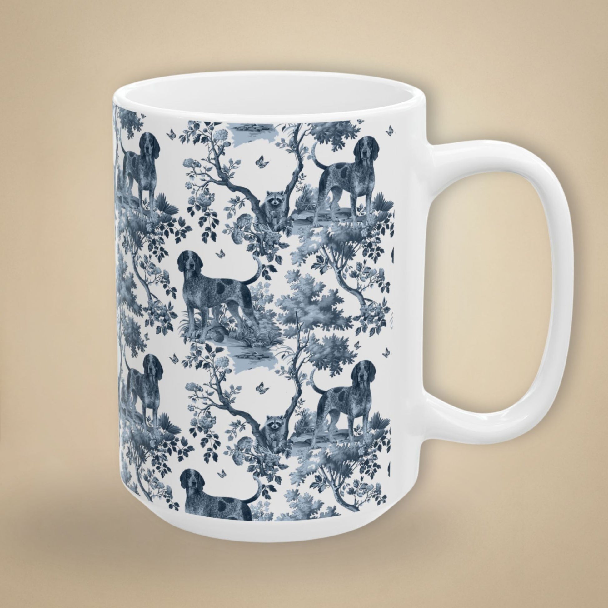 The love is real. The Bluetick Coonhound obsession is real. And this mug? Just as real as both. Our exclusive Bluetick Coonhound toile pattern brings elegant French design to your favorite obsession - printed in crisp, vibrant detail on glossy white ceramic. It's the kind of mug that makes people ask "where did you get that?" They're your world. This is your mug. Simple as that.