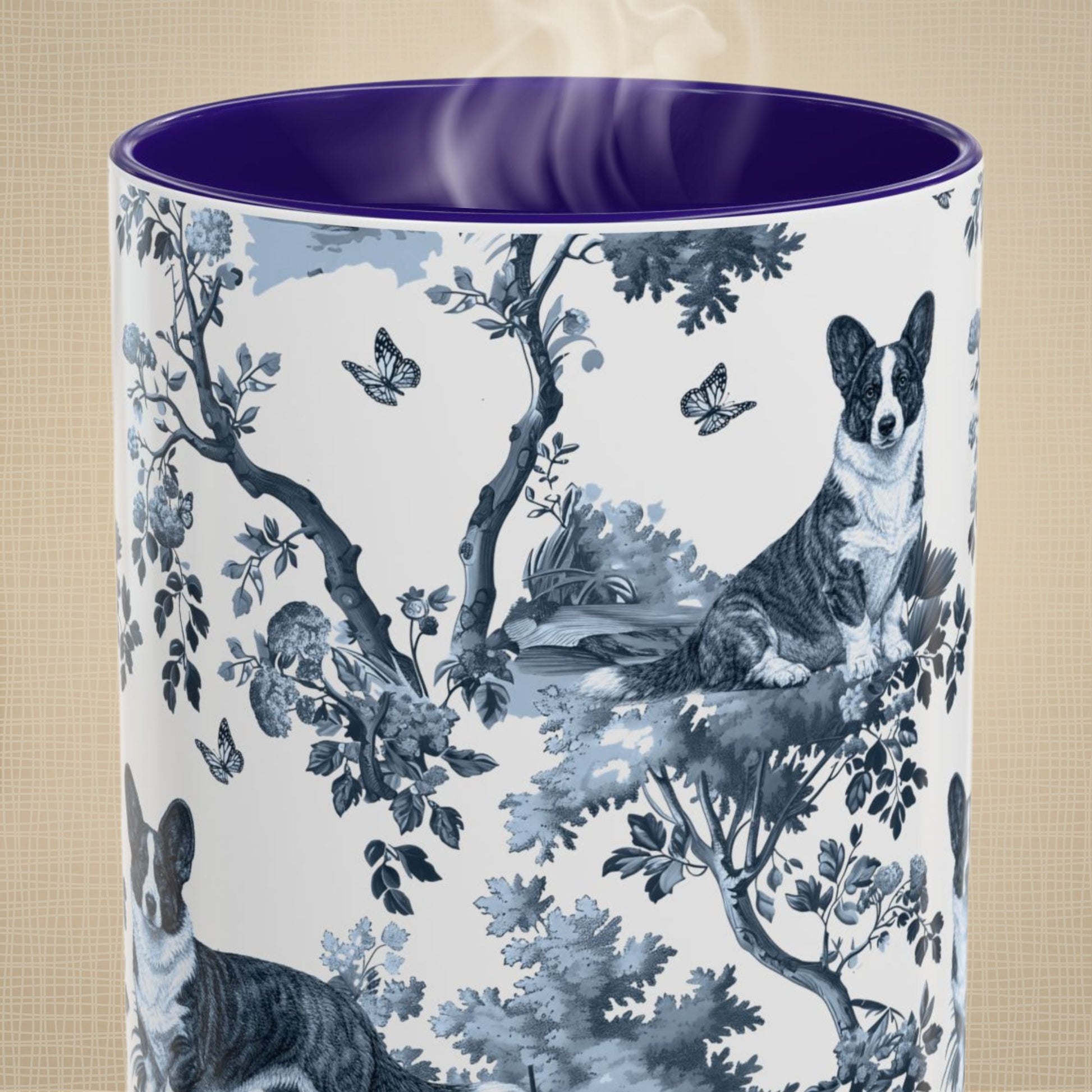 The love is real. The Cardigan Welsh Corgi obsession is real. And this mug? Just as real as both. Our exclusive Cardigan Welsh Corgi toile pattern brings elegant French design to your favorite obsession - printed in crisp, vibrant detail on glossy white ceramic with a striking deep blue interior and handle. It's the kind of mug that makes people ask "where did you get that?" They're your world. This is your mug. Simple as that.