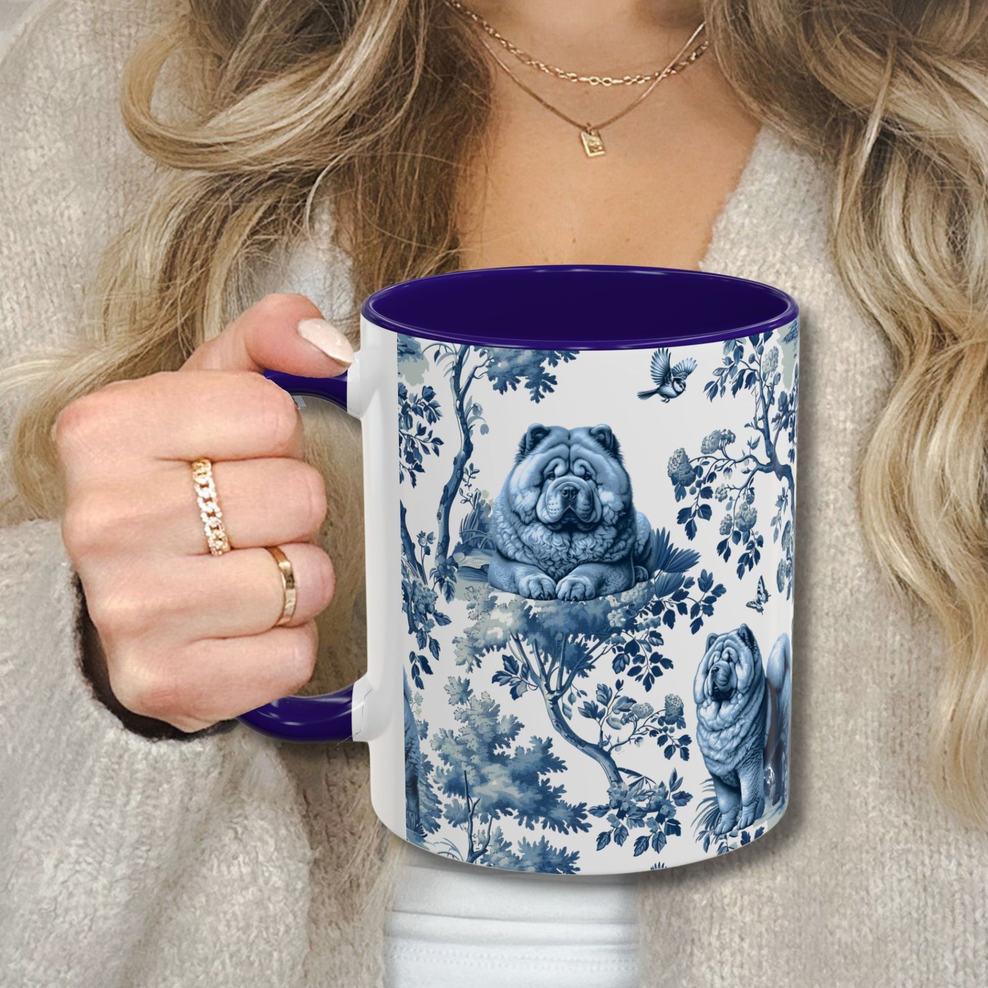 The love is real. The Chow obsession is real. And this mug? Just as real as both. Our exclusive Chow toile pattern brings elegant French design to your favorite obsession - printed in crisp, vibrant detail on glossy white ceramic with a striking deep blue interior and handle. It's the kind of mug that makes people ask "where did you get that?" They're your world. This is your mug. Simple as that.
