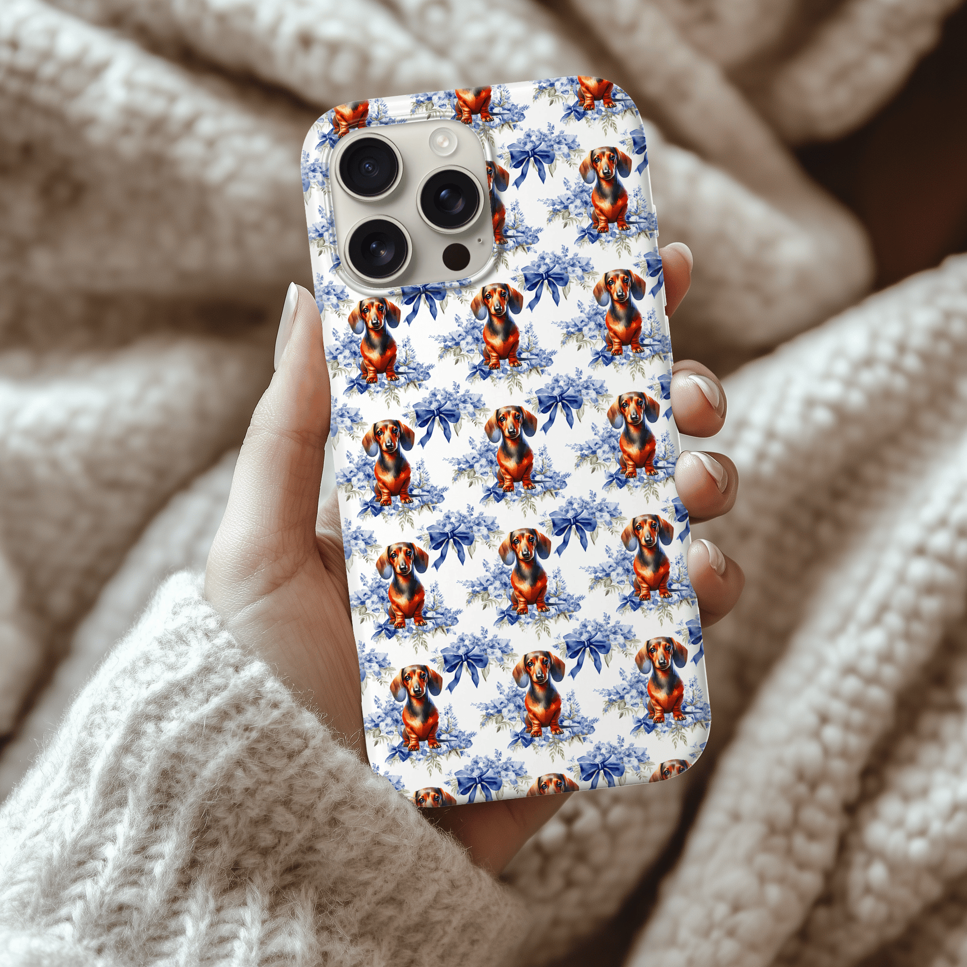 Dual-layer protection — polycarbonate shell over TPU lining — built to handle daily impact while the signature OhMyTails toile travels with you. Choose matte or glossy finish, charge wirelessly (not MagSafe supported), and carry your Red Dachshund with you everywhere.