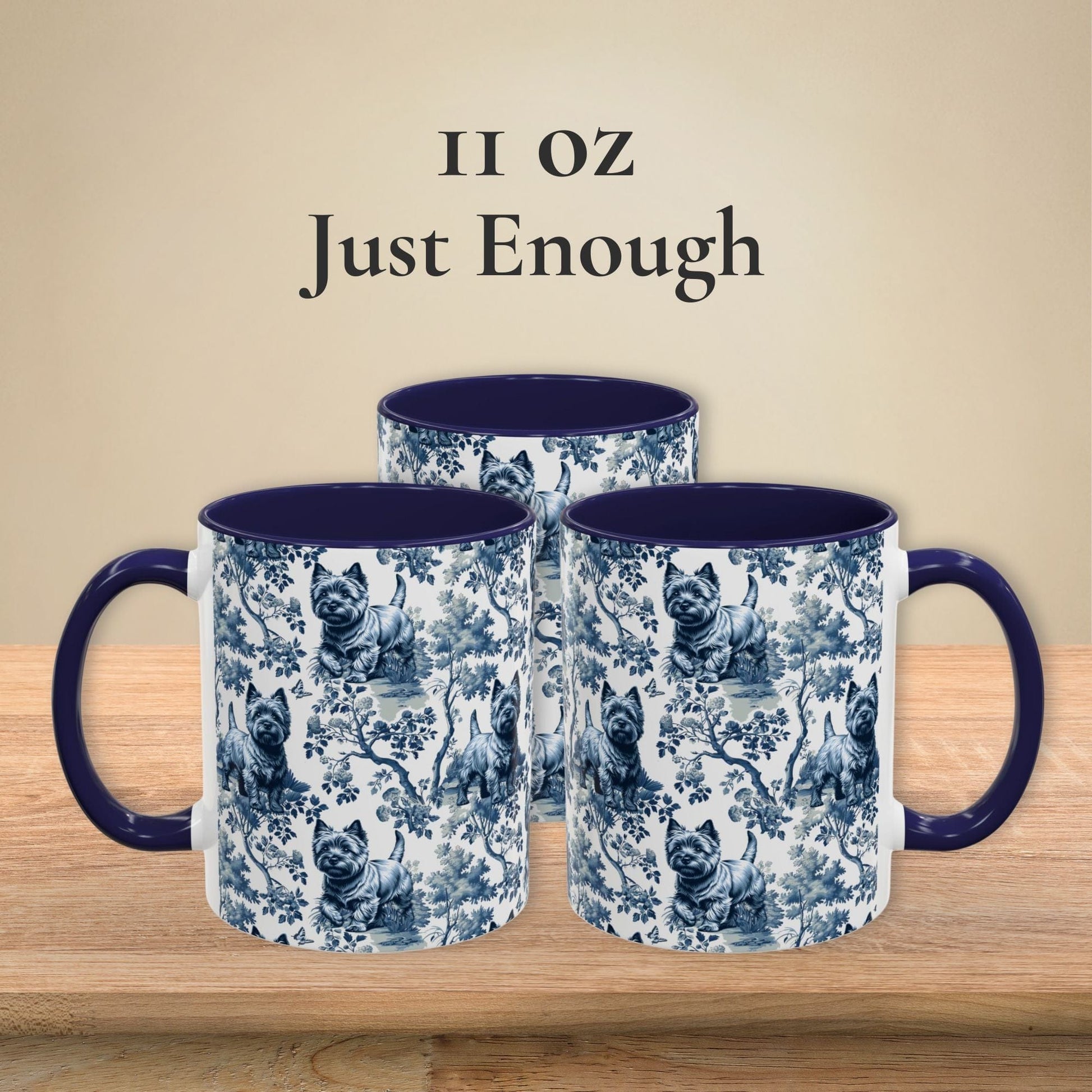 The love is real. The Cairn Terrier obsession is real. And this mug? Just as real as both. Our exclusive Cairn Terrier toile pattern brings elegant French design to your favorite obsession - printed in crisp, vibrant detail on glossy white ceramic with a striking deep blue interior and handle. It's the kind of mug that makes people ask "where did you get that?" They're your world. This is your mug. Simple as that.