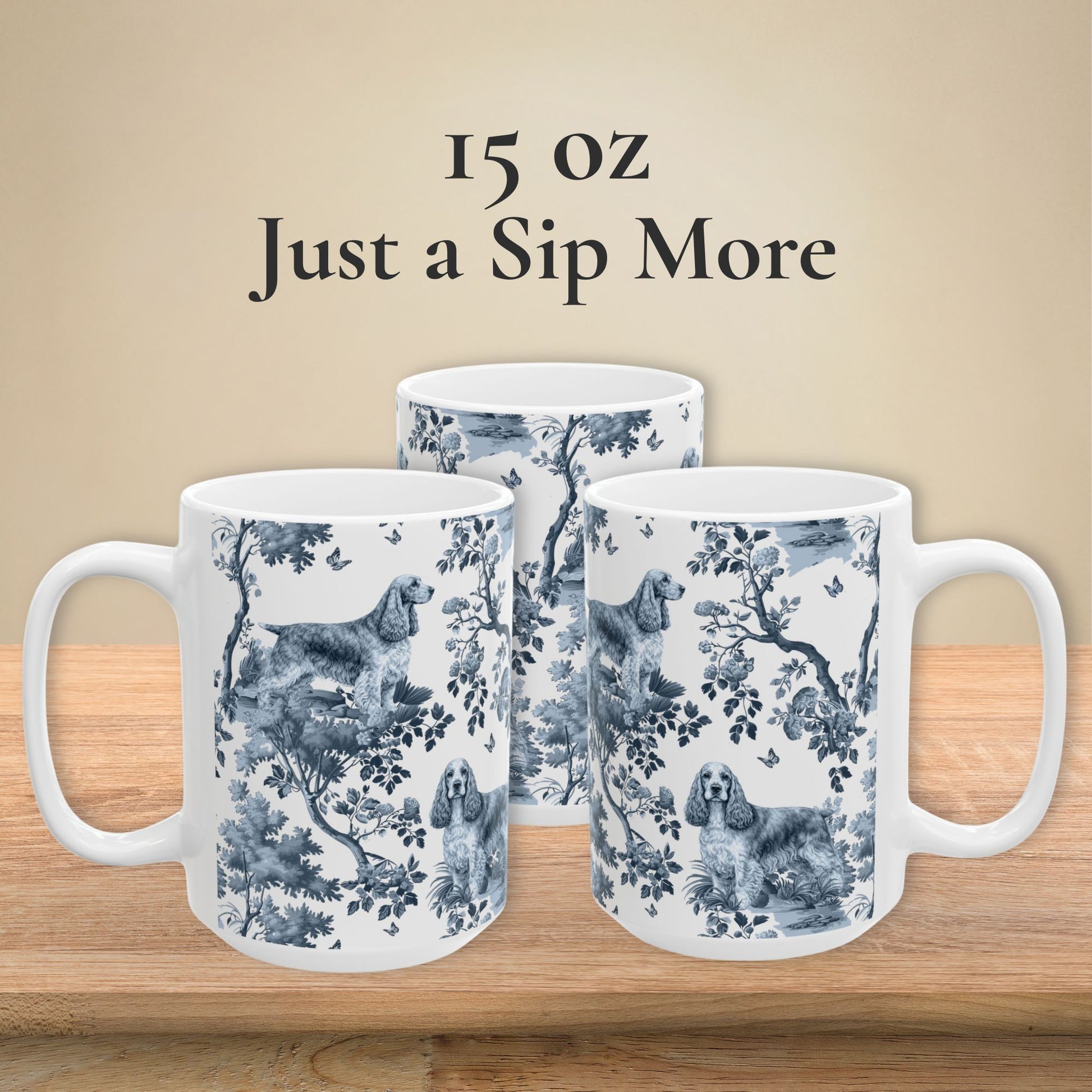 The love is real. The English Cocker Spaniel obsession is real. And this mug? Just as real as both. Our exclusive English Cocker Spaniel toile pattern brings elegant French design to your favorite obsession - printed in crisp, vibrant detail on glossy white ceramic. It's the kind of mug that makes people ask "where did you get that?" They're your world. This is your mug. Simple as that.
