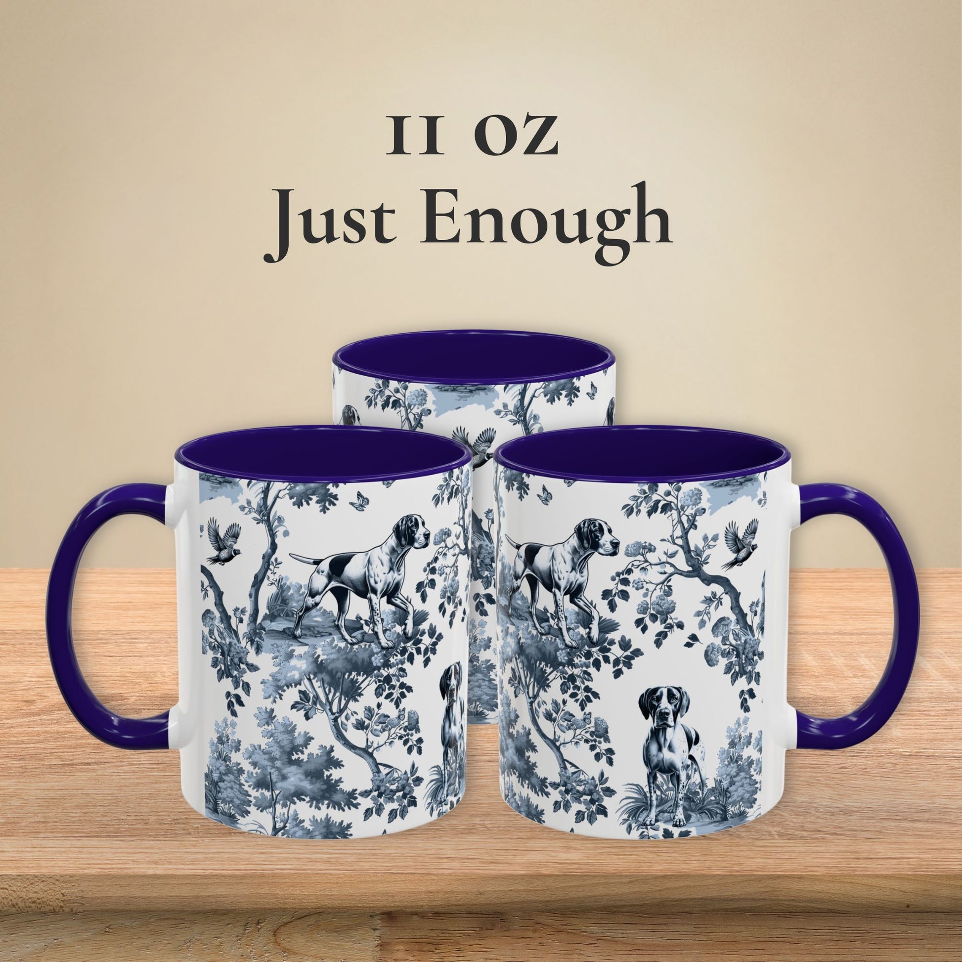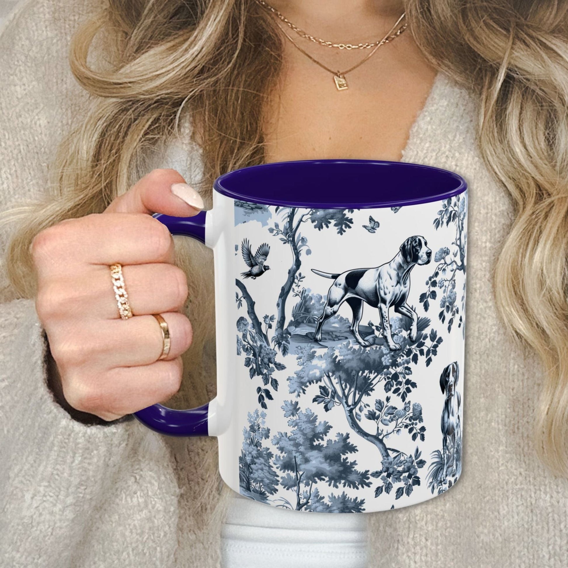 The love is real. The English Pointer obsession is real. And this mug? Just as real as both. Our exclusive English Pointer toile pattern brings elegant French design to your favorite obsession - printed in crisp, vibrant detail on glossy white ceramic with a striking deep blue interior and handle. It's the kind of mug that makes people ask "where did you get that?" They're your world. This is your mug. Simple as that.