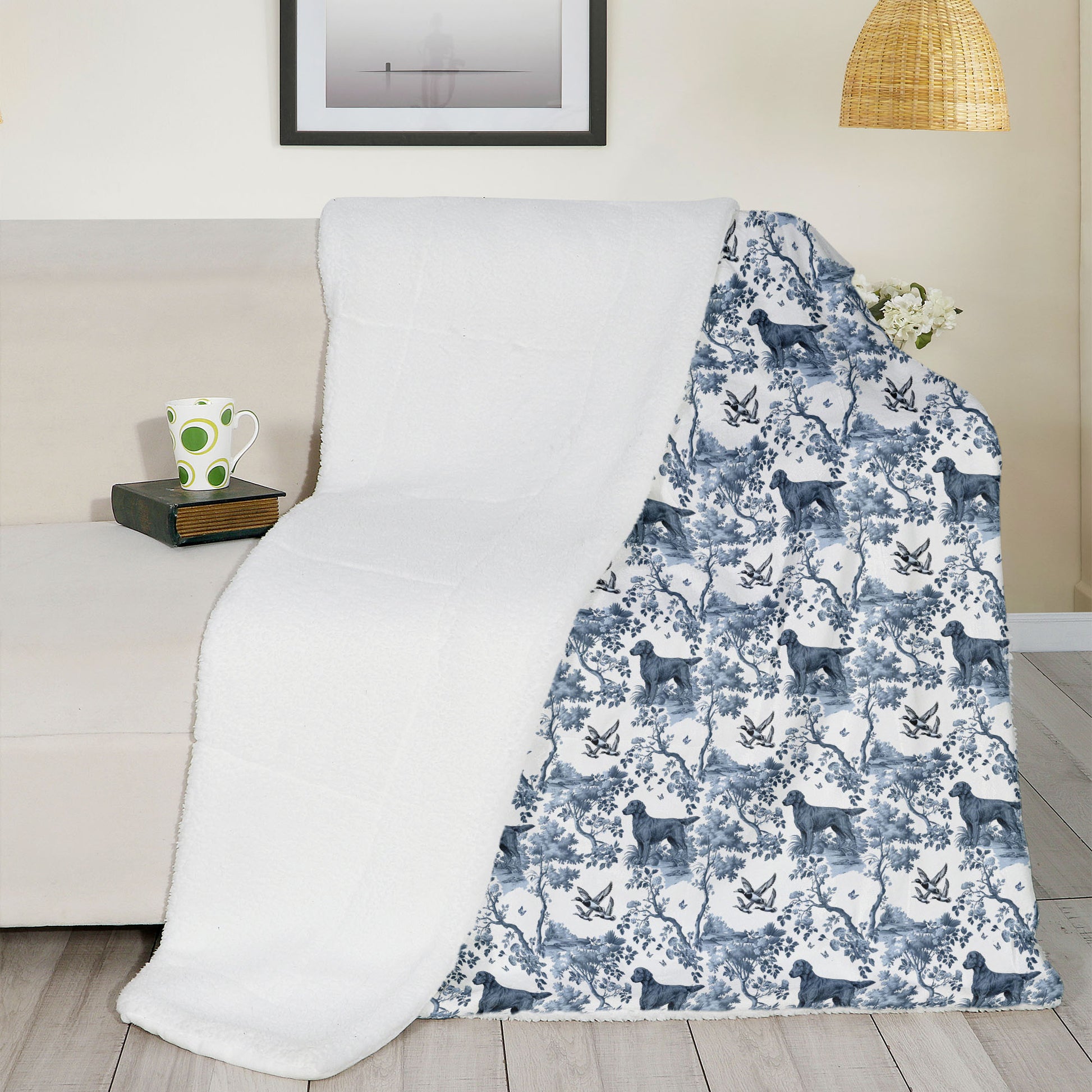 With a smooth printed Flat-Coated Retriever toile pattern front and plush sherpa backing, this blanket delivers wrap-around coziness. The sherpa fleece adds warmth without bulk. Perfect for sofas, beds, or anywhere you want to get cozy. Printed and shipped in the USA.