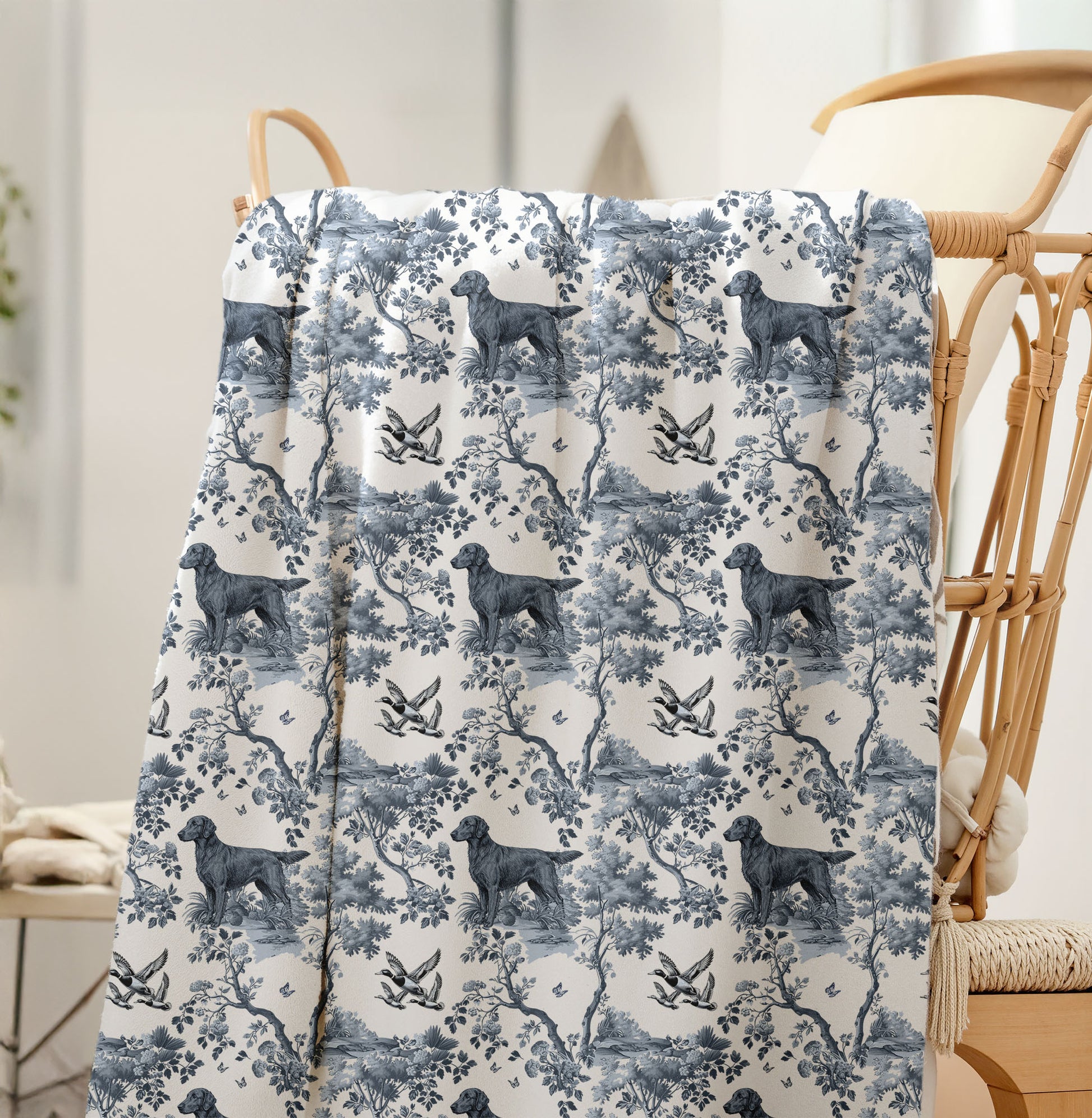 Ultra-soft velveteen fleece consistently praised for its ultra-soft feel. Lightweight and easy to layer, it's perfect for year-round comfort while letting the beautiful Flat-Coated Retriever toile take center stage. Printed and shipped in the USA.