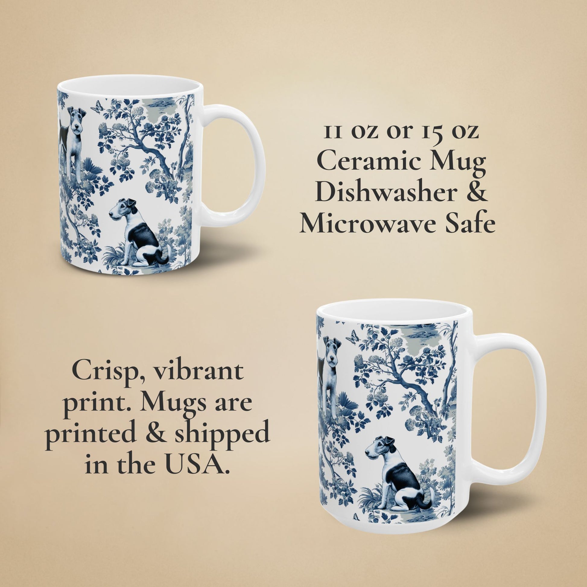 The love is real. The Fox Terrier obsession is real. And this mug? Just as real as both. Our exclusive Fox Terrier toile pattern brings elegant French design to your favorite obsession - printed in crisp, vibrant detail on glossy white ceramic. It's the kind of mug that sits on your desk and makes people ask "where did you get that?" Choose 11oz for your "just enough caffeine to function" days or 15oz for "I'm going to need reinforcements" mornings. They're your world. This is your mug. Simple as that.