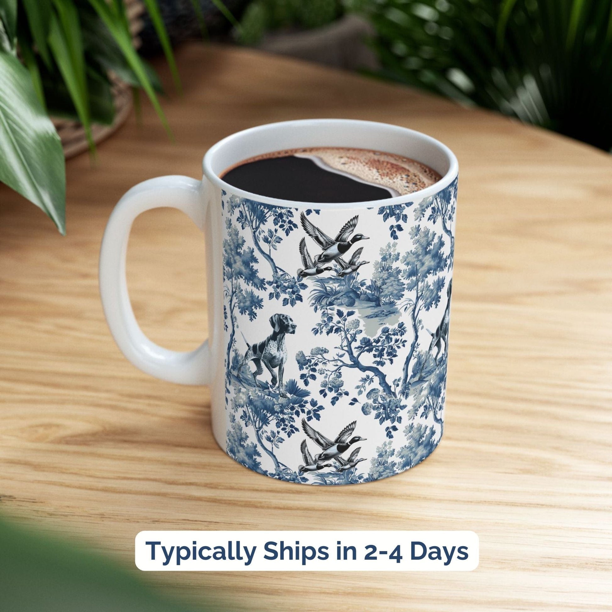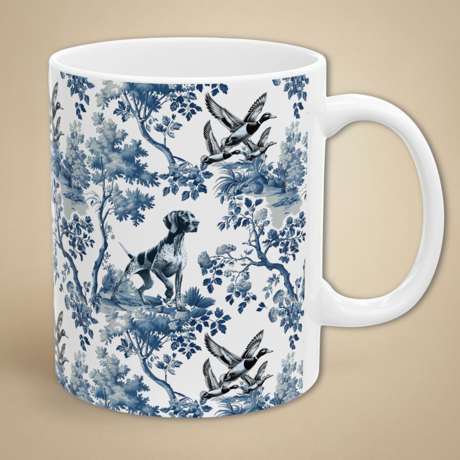 The love is real. The German Shorthaired Pointer obsession is real. And this mug? Just as real as both. Our exclusive German Shorthaired Pointer toile pattern brings elegant French design to your favorite obsession - printed in crisp, vibrant detail on glossy white ceramic. It's the kind of mug that sits on your desk and makes people ask "where did you get that?" Choose 11oz for your "just enough caffeine to function" days or 15oz for "I'm going to need reinforcements" mornings. They're your world. This is your mug. Simple as that.