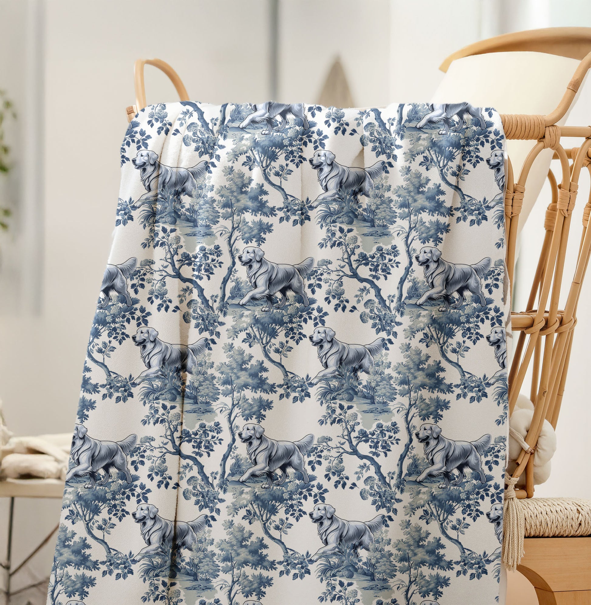 Ultra-soft velveteen fleece consistently praised for its ultra-soft feel. Lightweight and easy to layer, it's perfect for year-round comfort while letting the beautiful Golden Retriever toile take center stage. Printed and shipped in the USA.