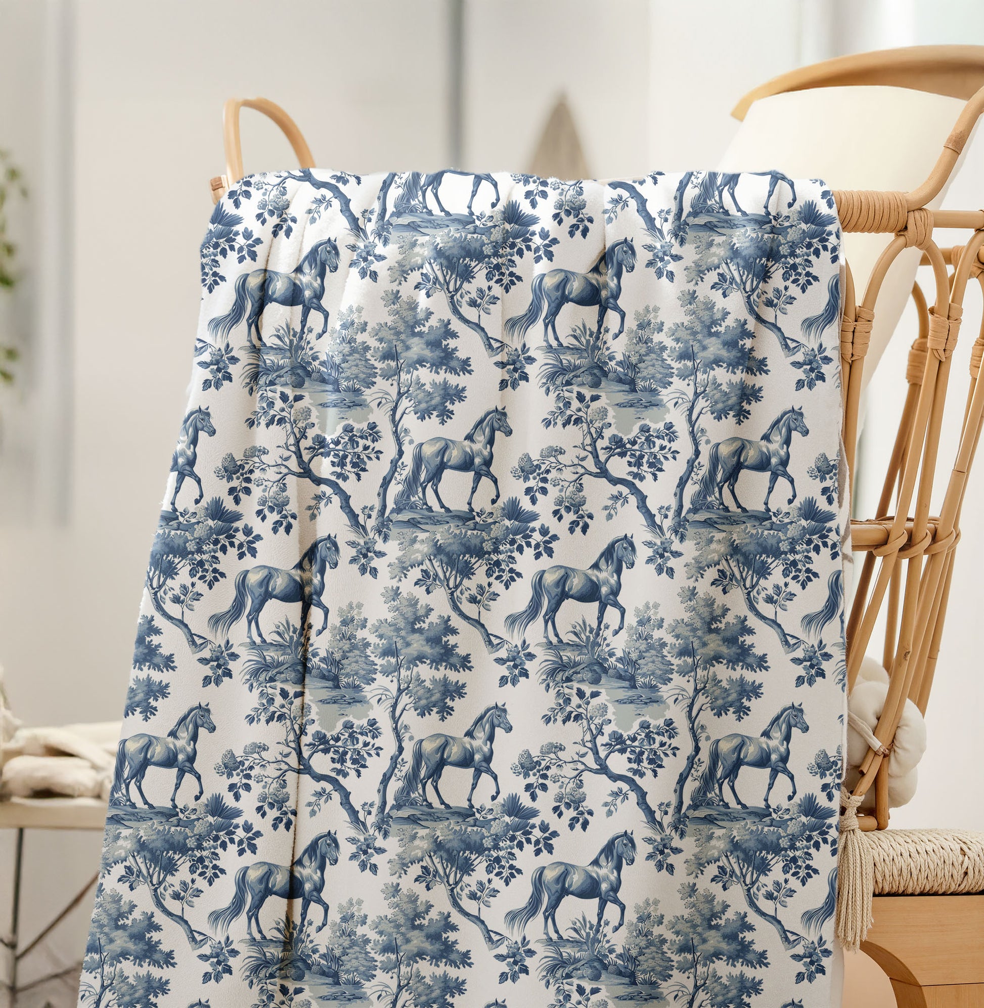 With a smooth printed Horse toile pattern front and plush sherpa backing, this blanket delivers wrap-around coziness. The sherpa fleece adds warmth without bulk. Perfect for sofas, beds, or anywhere you want to get cozy. Printed and shipped in the USA.