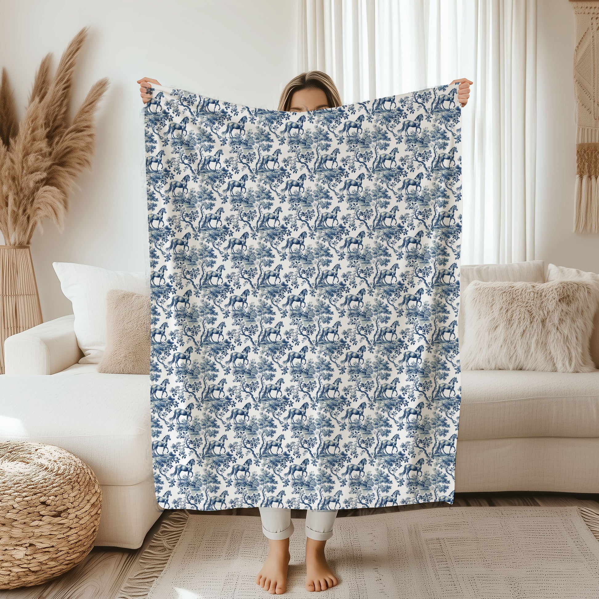 Ultra-soft velveteen fleece consistently praised for its ultra-soft feel. Lightweight and easy to layer, it's perfect for year-round comfort while letting the beautiful Horse toile take center stage. Printed and shipped in the USA.