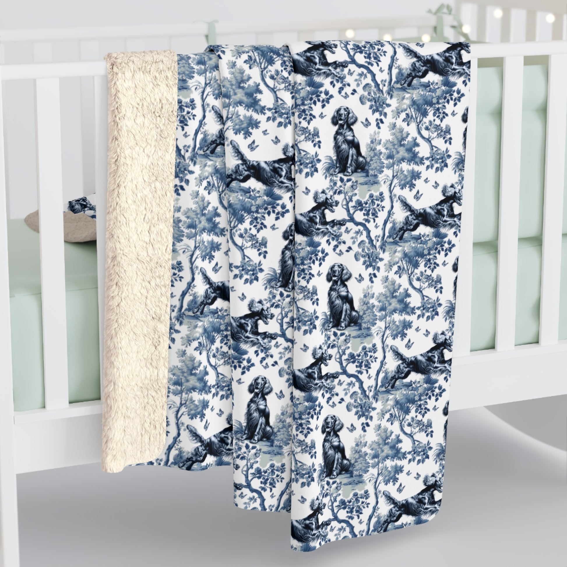 With a smooth printed Irish Setter toile pattern front and plush sherpa backing, this blanket delivers wrap-around coziness. The sherpa fleece adds warmth without bulk — perfect for sofas, beds, or anywhere you want to get cozy. Printed and shipped in the USA.