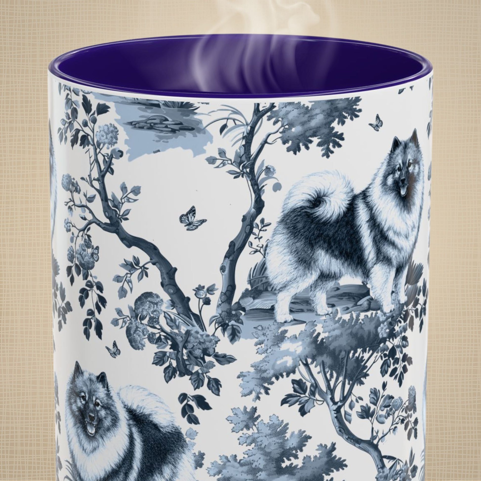 The love is real. The Keeshond obsession is real. And this mug? Just as real as both. Our exclusive Keeshond toile pattern brings elegant French design to your favorite obsession - printed in crisp, vibrant detail on glossy white ceramic with a striking deep blue interior and handle. It's the kind of mug that makes people ask "where did you get that?" They're your world. This is your mug. Simple as that.