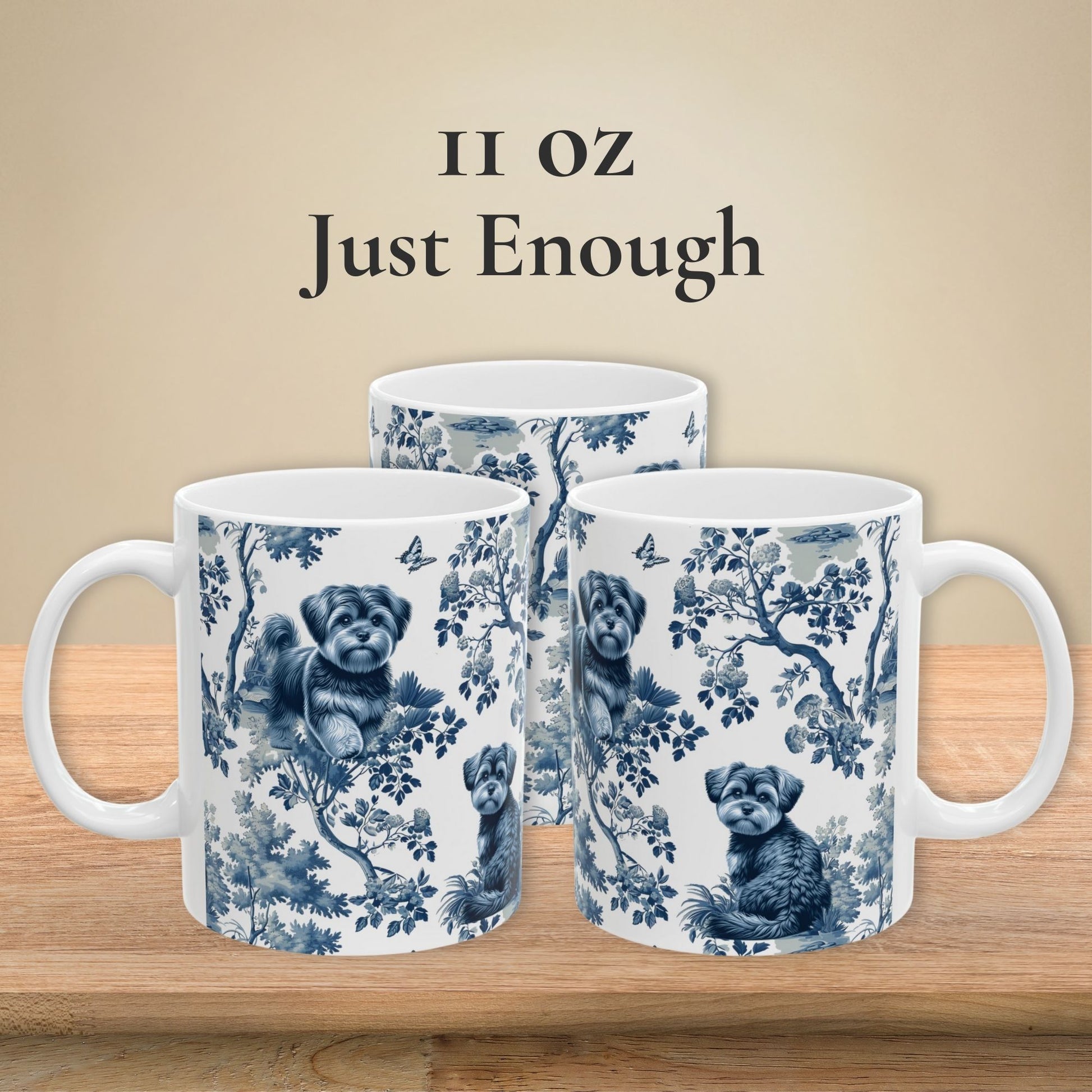 The love is real. The Morkie obsession is real. And this mug? Just as real as both. Our exclusive Morkie toile pattern brings elegant French design to your favorite obsession - printed in crisp, vibrant detail on glossy white ceramic. It's the kind of mug that sits on your desk and makes people ask "where did you get that?" Choose 11oz for your "just enough caffeine to function" days or 15oz for "I'm going to need reinforcements" mornings. They're your world. This is your mug. Simple as that.