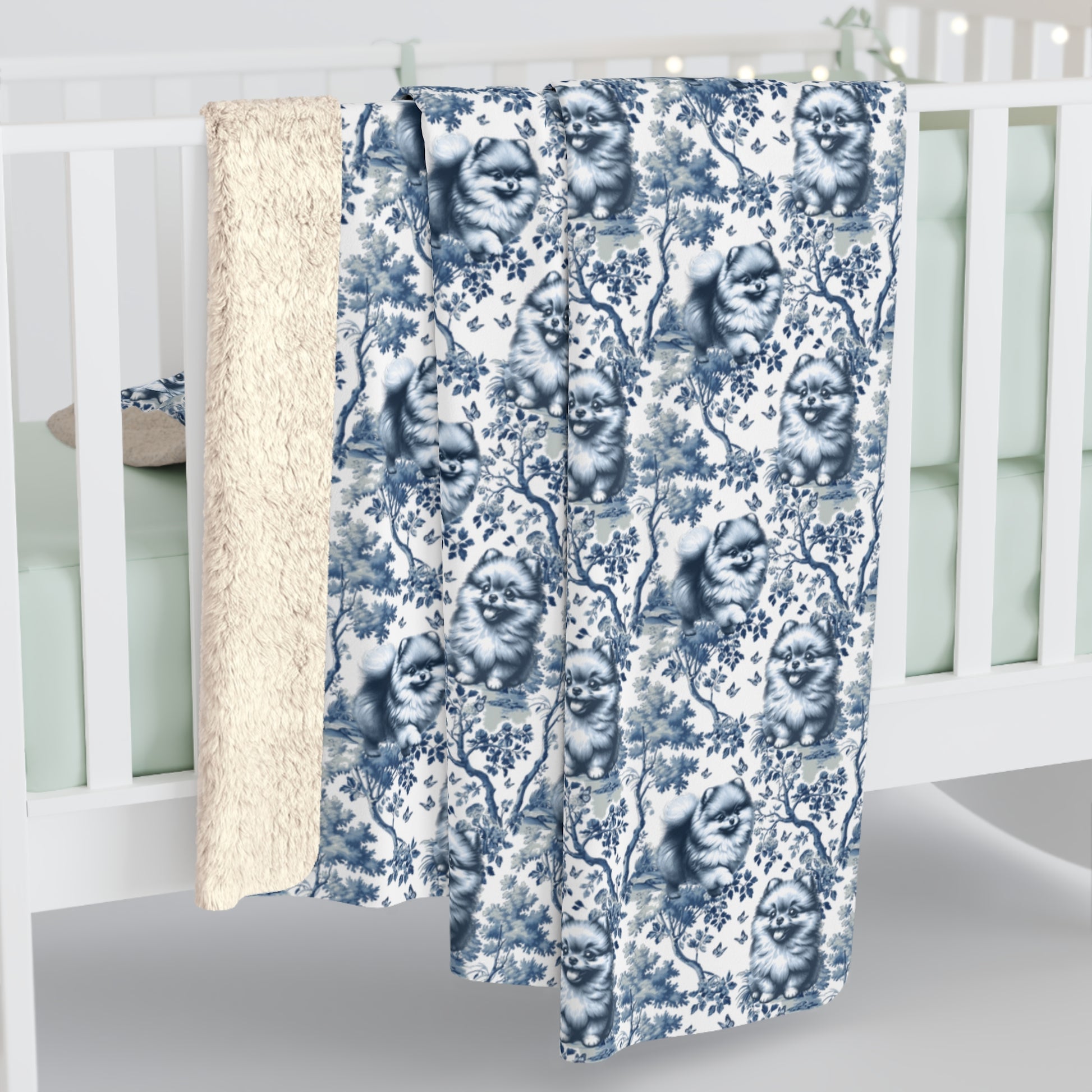 With a smooth printed Pomeranian toile pattern front and plush sherpa backing, this blanket delivers wrap-around coziness. The sherpa fleece adds warmth without bulk — perfect for sofas, beds, or anywhere you want to get cozy. Printed and shipped in the USA.