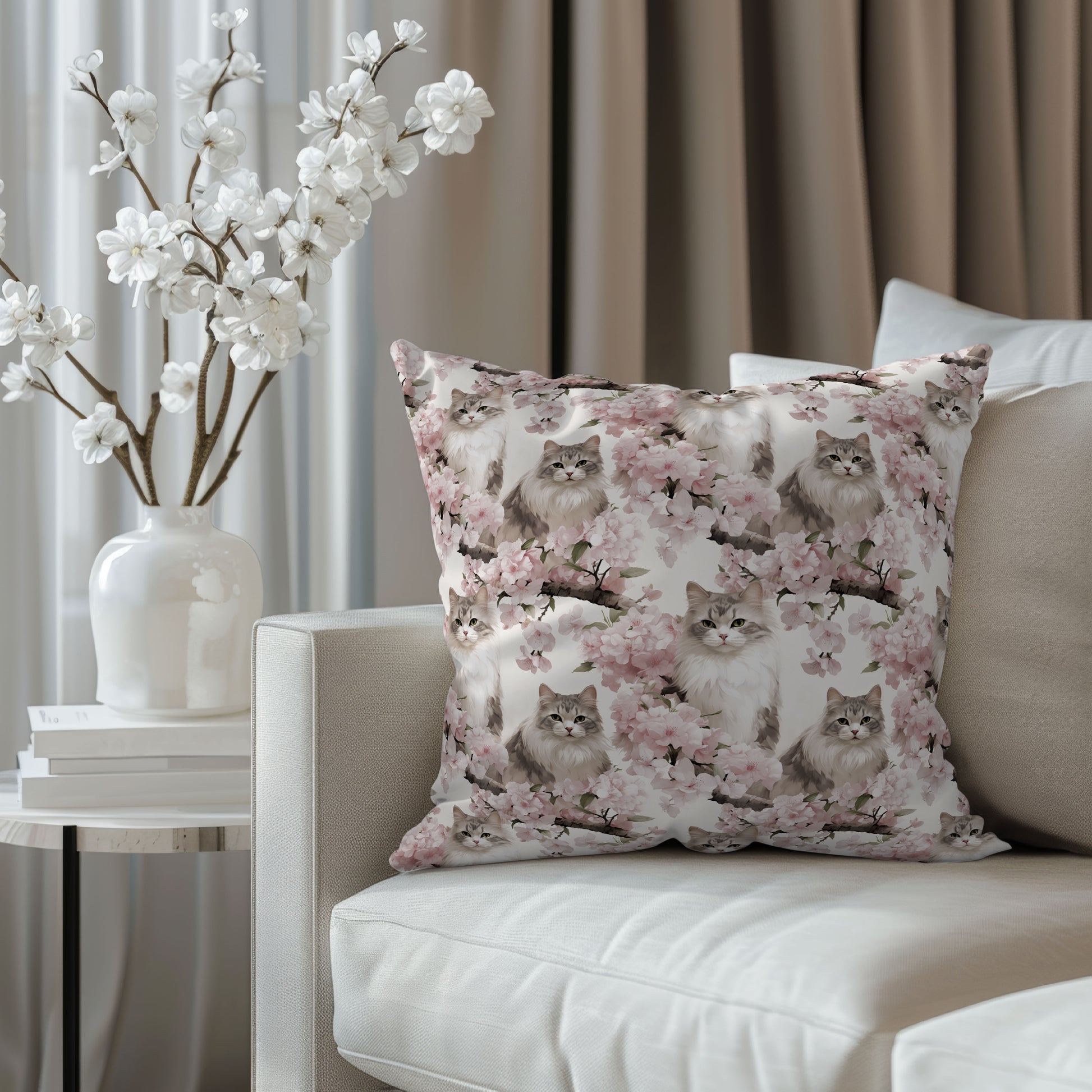 Ragdoll Cat Pillow Cover - Pink Blossom