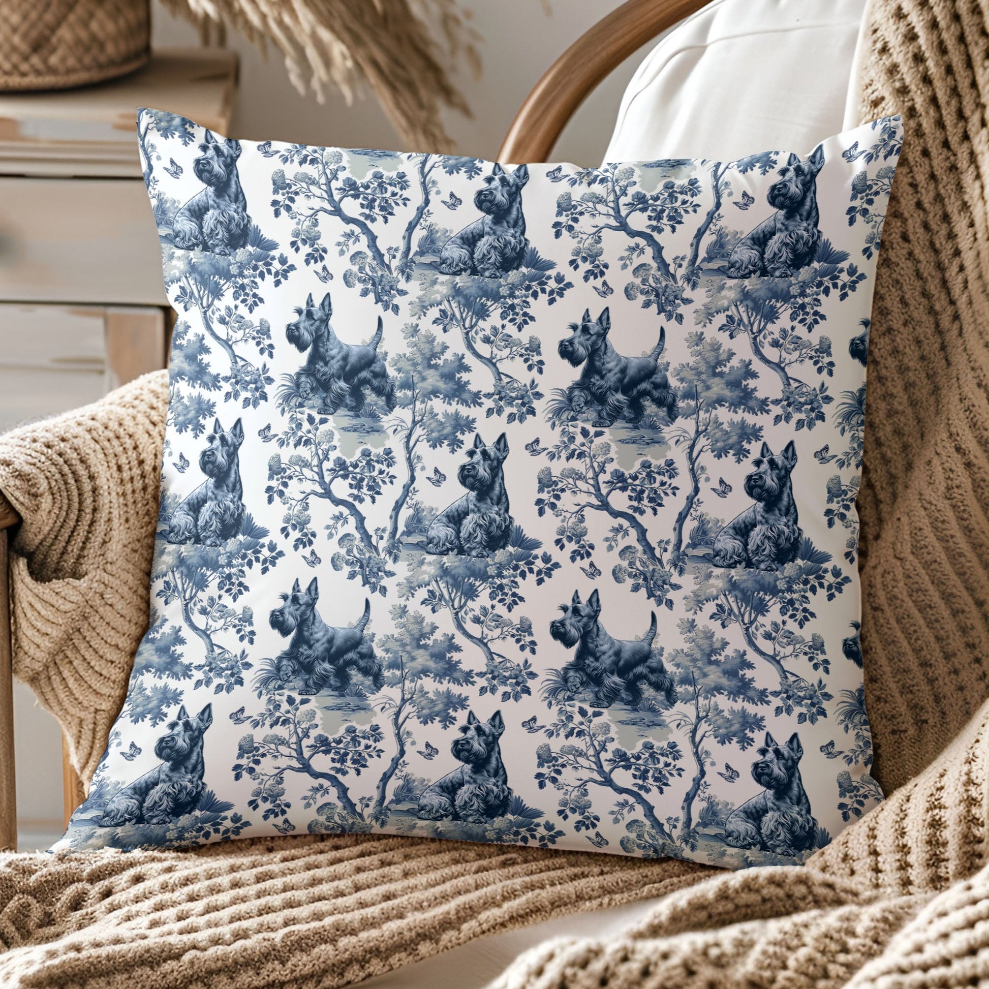 Our exclusive Scottish Terrier toile pattern transforms your favorite breed into sophisticated home décor - the kind that makes guests pause and ask "where did you find this?" Printed on both sides so it looks intentional from every angle, with a hidden zipper that keeps the focus exactly where it belongs: on your impeccable taste.