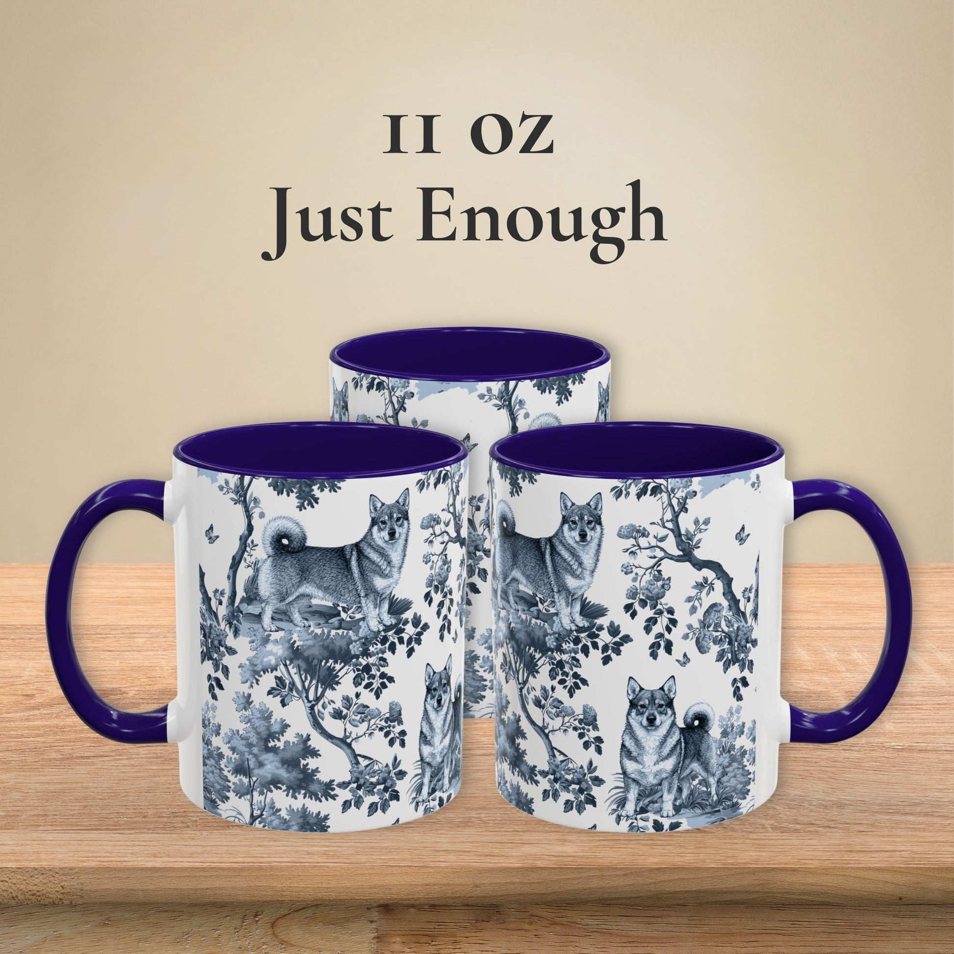 The love is real. The Swedish Vallhund obsession is real. And this mug? Just as real as both. Our exclusive Swedish Vallhund toile pattern brings elegant French design to your favorite obsession - printed in crisp, vibrant detail on glossy white ceramic with a striking deep blue interior and handle. It's the kind of mug that makes people ask "where did you get that?" They're your world. This is your mug. Simple as that.