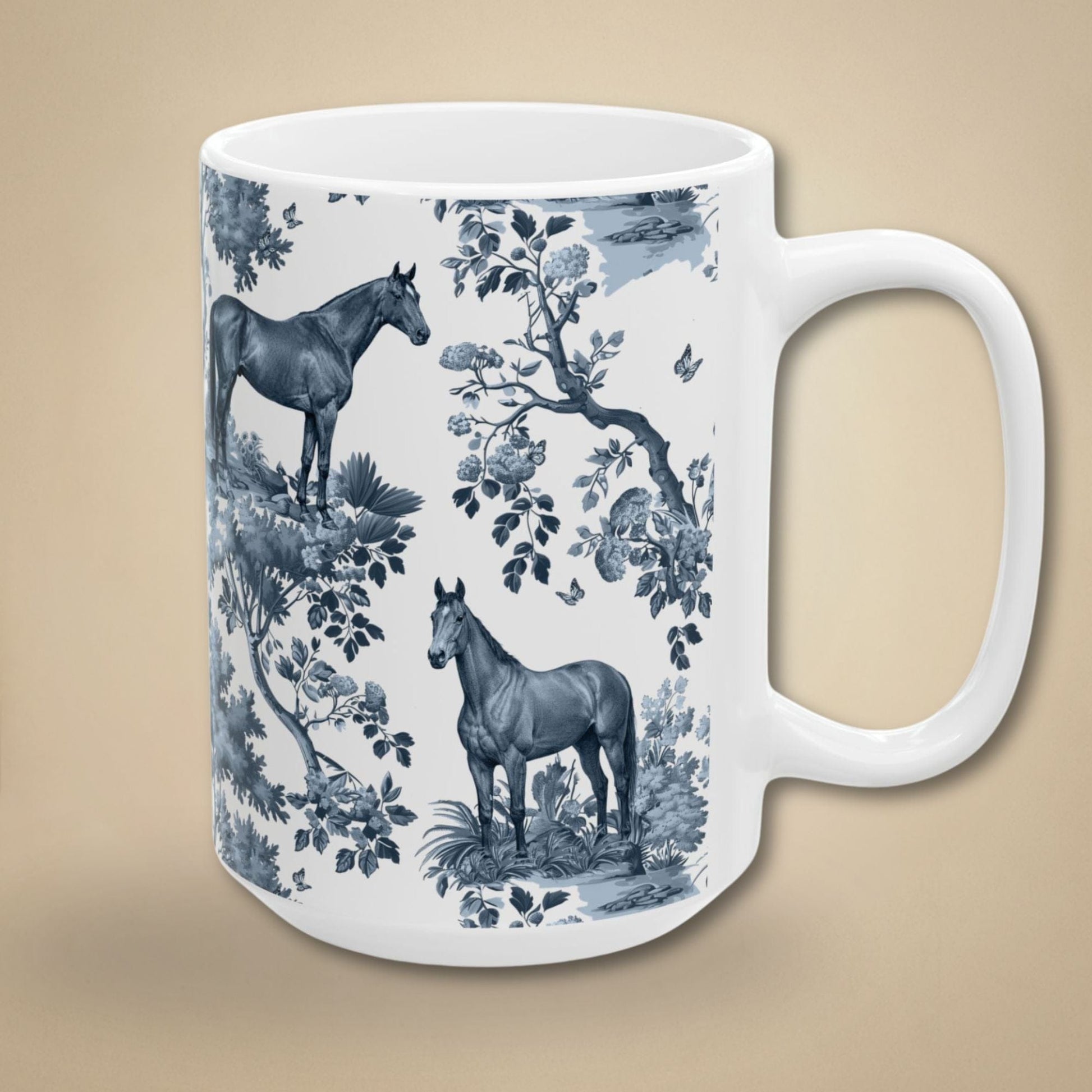 The love is real. The Thoroughbred Horse obsession is real. And this mug? Just as real as both. Our exclusive Thoroughbred Horse toile pattern brings elegant French design to your favorite obsession - printed in crisp, vibrant detail on glossy white ceramic. It's the kind of mug that makes people ask "where did you get that?" They're your world. This is your mug. Simple as that.
