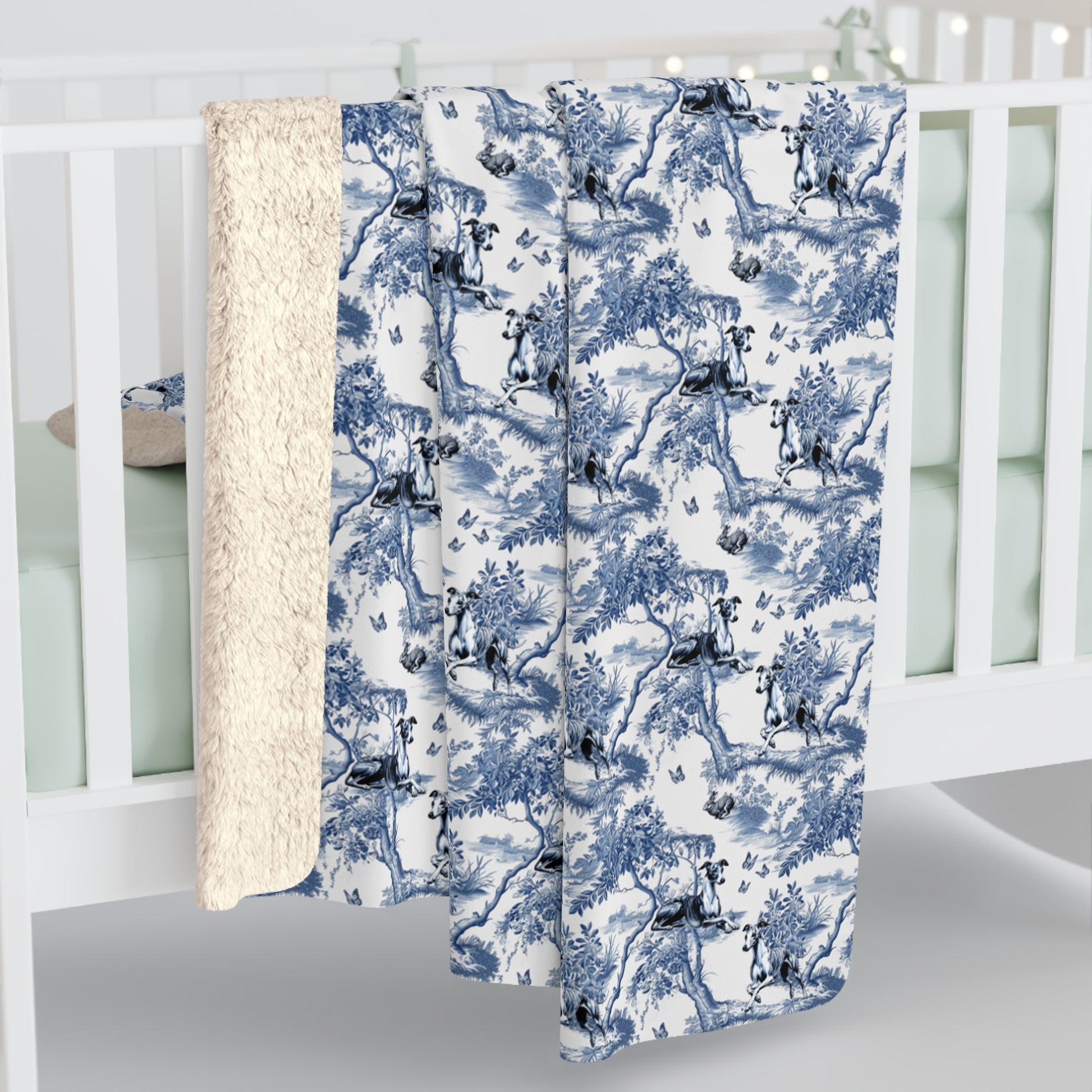 With a smooth printed Whippet toile pattern front and plush sherpa backing, this blanket delivers wrap-around coziness. The sherpa fleece adds warmth without bulk — perfect for sofas, beds, or anywhere you want to get cozy. Printed and shipped in the USA.
