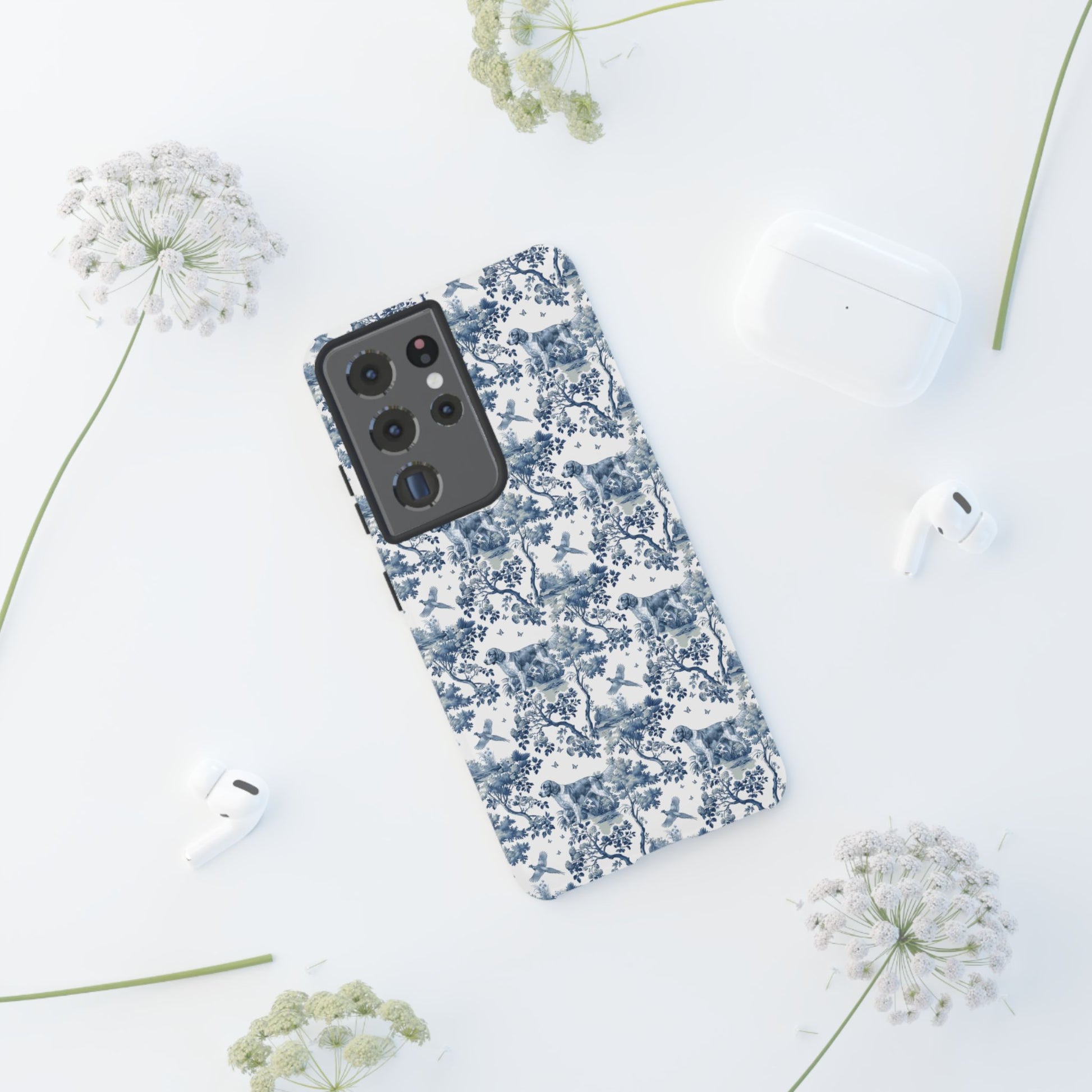 Dual-layer protection — polycarbonate shell over TPU lining — built to handle daily impact while the signature OhMyTails toile travels with you. Choose matte or glossy finish, charge wirelessly (not MagSafe supported), and carry your Welsh Springer Spaniel with you everywhere.